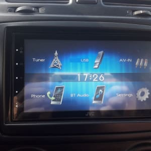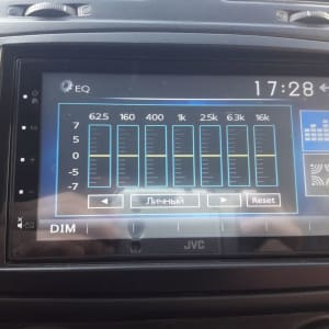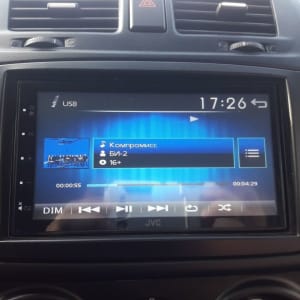+ Головное устройство JVC, со спокойным интерфейсом в синих тонах, куплен в ДНС, а не на али, оригинальная коробка с чеком, не выбрасывал. Не то, двухдиновое какБы чудо, с полосой экрана в мизинец