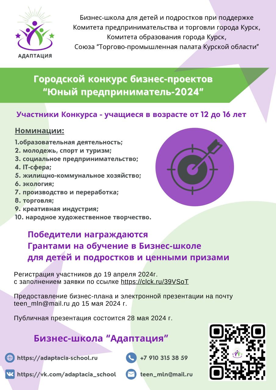 Конкурс организован бизнес-школой для детей и подростков «Адаптация» и проводится при поддержке комитета предпринимательства и торговли, комитета образования и союза «Торгово-промышленной палаты Курской области».