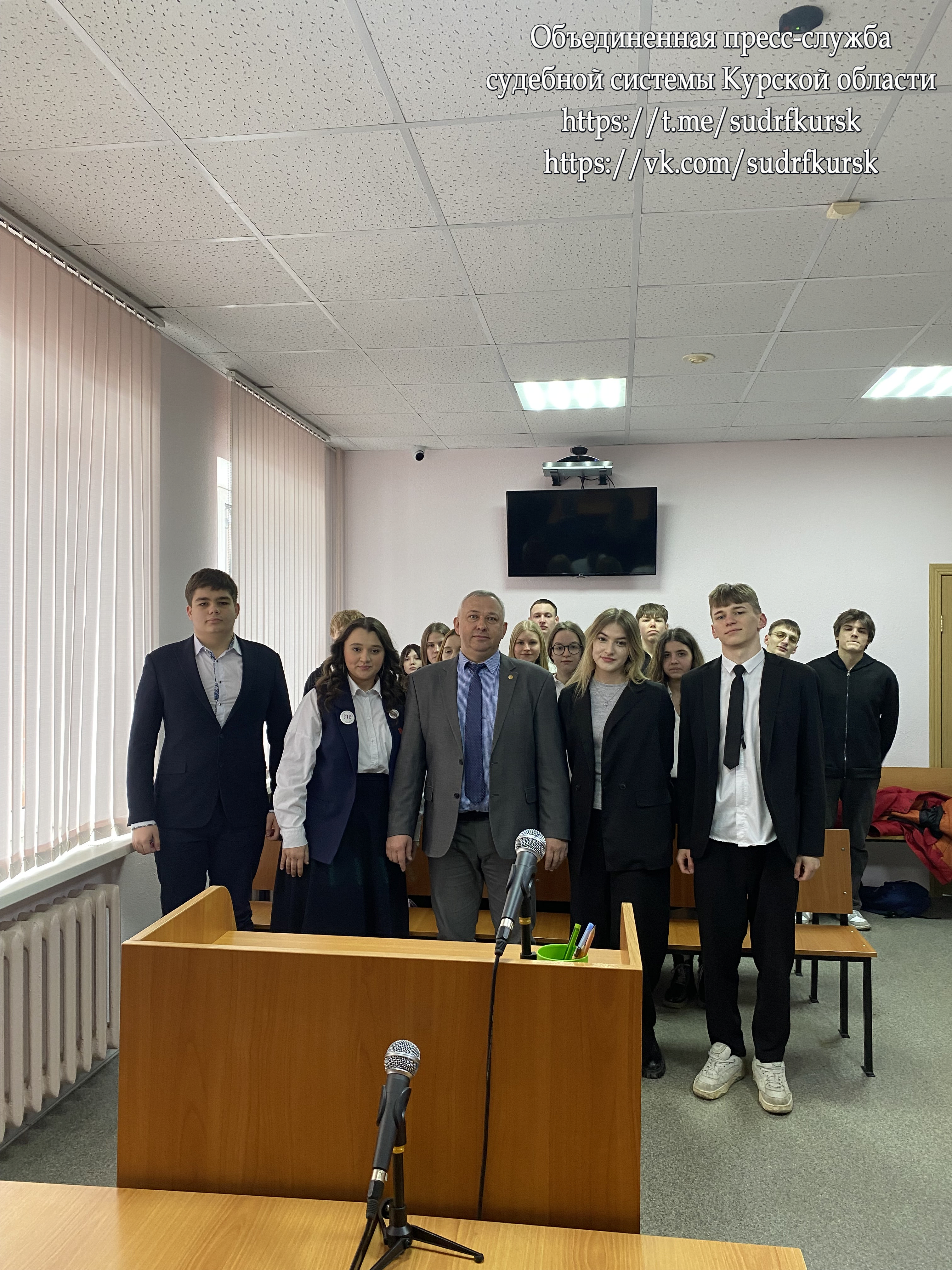 13 февраля 2025 года в целях повышения правовой культуры молодежи, профориентации среди несовершеннолетних в Курском районном суде Курской области состоялась встреча с учениками 11 класса МБОУ «Лицей № 6 имени М.А. Булатова».