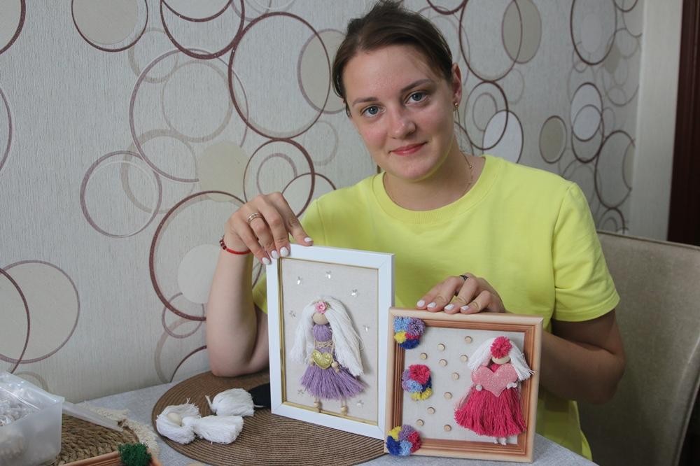 — Рисовала в садике и в школе, всегда интересовалась модой, шила одежду для куклы Барби. Делала подружкам маникюр и выводила на ногтях имитацию акварельных картин. Сейчас работаю лаборантом физико-механических испытаний на МГОКе и продолжаю искать себя в творчестве, — рассказала София. Фото ангелочков ручной работы в технике макраме она увидела в одной из социальных сетей у рукодельницы из Кореи и прошла у нее онлайн-курс по изготовлению Ангела-хранителя из пряжи. Первой работой стала куколка для старшей дочери Марии. Девочка пришла из школы и увидела на письменном столе в своей комнате Ангела, в котором сразу узнала себя.— Обычно таких кукол делают похожими на человека, которому они станут оберегом. У Ангела для Маши длинные светлые волосы принцессы и фиолетовое платье – это любимый цвет дочки. Младшей дочке Даше сделала куклу-малышку и поместила ее на ярко оформленное панно. Если просят сделать куколку в подарок, мне рассказывают, как человек выглядит, какие у него предпочтения в одежде и другие «особые приметы». Иногда Ангелу можно нарисовать улыбку, но чаще кукол делают безликими, чтобы мастерица своими неосторожными мыслями и переживаниями во время работы не навлекла на будущего владельца оберега несчастья.