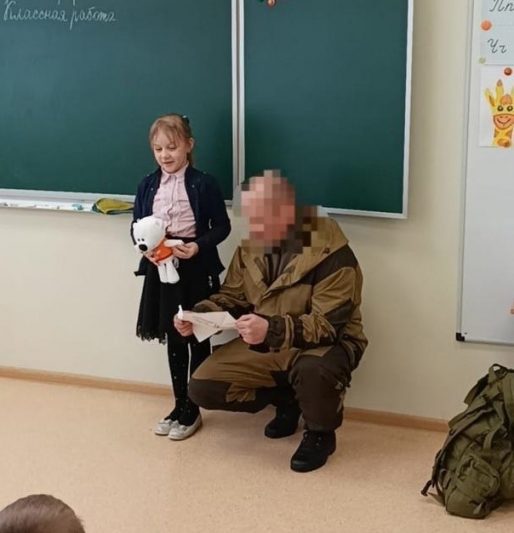 Письмо ученицы 1″Б» класса Ксении Лукашевской попало в руки военнослужащему, принимающему участие в СВО. Слова девочки настолько тронули бойца, что он лично приехал её поблагодарить. Еще он подарил девочке игрушку — белого мишку.