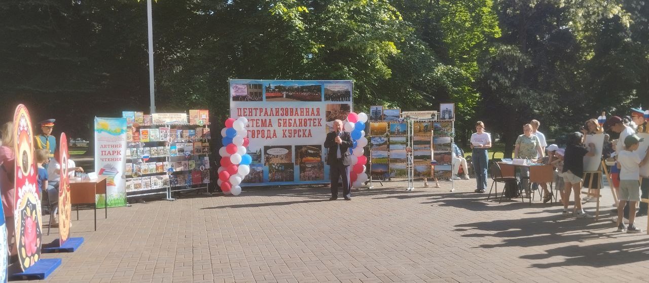 В рамках проекта «Летний парк чтения» в парке Героев Гражданской войны состоялась литературно-патриотическая программа «Немыслима Россия без имён». Мероприятие организовано Централизованной системой библиотек Курска и приурочено ко Дню России.