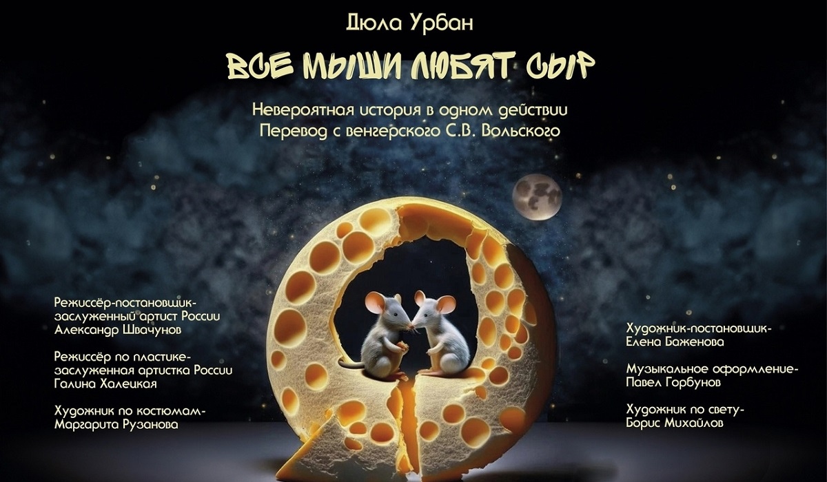 На сцене Курского драматического театра имени А.С. Пушкина состоялась премьера спектакля «Все мыши любят сыр». Это постановка заслуженного артиста России Александра Швачунова по произведению венгерского писателя Дюлы Урбана.