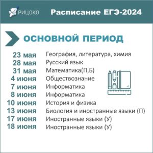 — Приказом Минпросвещения РФ и Рособрнадзора утверждено расписание ЕГЭ 2024 года, в котором выделяются досрочный, основной и дополнительный периоды. Выпускники текущего года будут сдавать ЕГЭ в основной период (май-июнь), выпускники прошлых лет — в резервные дни основного периода.