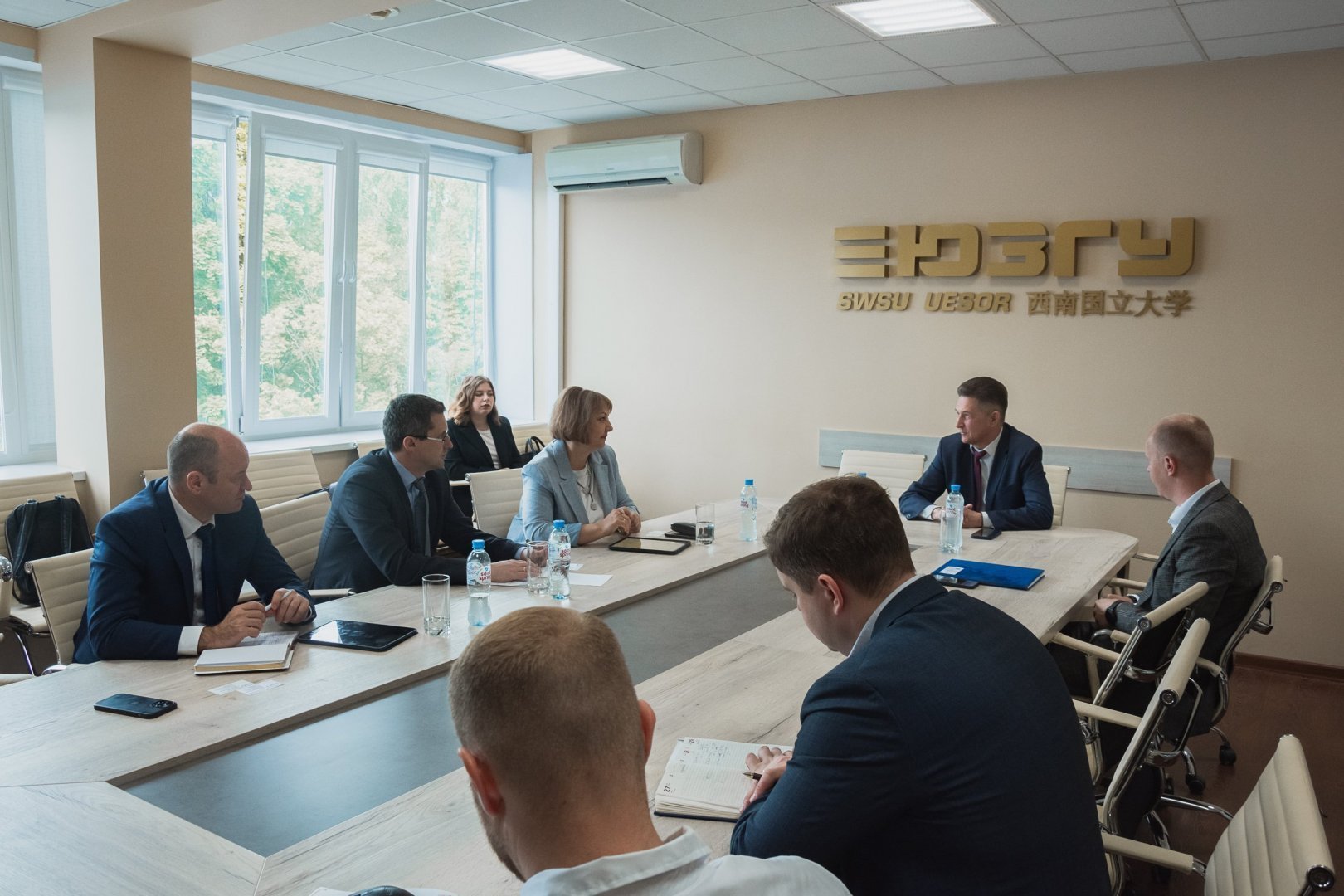 В первый день работы состоялась встреча с ректором ЮЗГУ Сергеем Емельяновым, проректором по науке и международной деятельности Дмитрием Титовым, проректором по цифровой трансформации Алексеем Пыхтиным и директором проектного офиса Дмитрием Голубовым. В ходе обсуждения экспертная группа ознакомилась с деятельностью вуза, а также узнала о результатах реализации программы «Приоритет 2030».