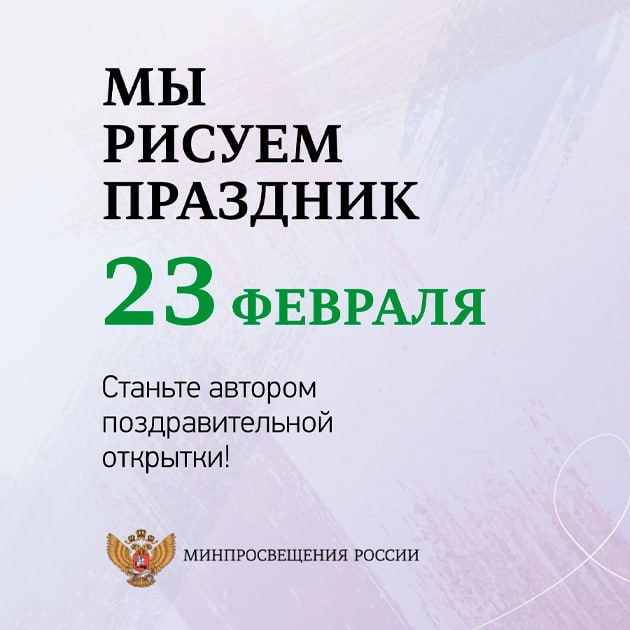 Работы принимаются до 16 февраля! 9 самых оригинальных открыток будут опубликованы в сообществе Минпросвещения. Они пройдут народное голосование, и уже 23 февраля будет объявлен победитель.