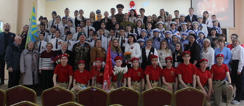 Дорогой ценой досталась нашему народу победа. Почти 4 года – 1418 дней и ночей – шла война. Это были годы лишений, горя, тяжёлого труда. Учащиеся 11А класса вспомнили о событиях, которые предшествовали началу войны, исполнили популярные песни военных лет. О героических событиях этого тяжелейшего испытания, которые в итоге привели к Великой Победе, рассказали участники праздника в стихотворениях и песнях. Ученики 10 а класса подготовили театрализованную постановку отрывка повести Б. Васильева «А зори здесь тихие». 6- классники задорно исполнили танец на любимую «Катюшу». Непоколебимой стойкости, мужеству и массовому героизму в Курской битве, 80-летие которой отмечается в этом году, была посвящена страница видеопрезентации. Исполнение известных военных песен, эмоциональное чтение стихотворений о войне, артистизм участников никого не оставили равнодушными в зале. Очень ярким моментом праздника стало участие победителей и призеров марш-парада «Слава армии родной!», который проводился в рамках военно-патриотического месячника. Торжественным маршем в зал вошли юнармейцы с флагом Победы и учащиеся 3А, 5аб, 6А классов. Массовое исполнение песни «Служить России» было подхвачено всем залом. Директор гимназии Говорова Оксана Вениаминовна поздравила всех присутствующих с Великим Днем Победы. Минутой молчания участники праздника почтили память погибщих. Пускай и ныне ветра шумят над нами злые, мы не изменим традициям своим — бороться с темной силою, со злобой и коварством! За правду, за победу, за мир, за ценности свободы Родины воюют наши воины сегодня, бьют неонацистов Украины. Среди них выпускники нашей гимназии Назаров Алексей и Леонтьев Сергей, отдавшие свою жизнь за наше будущее, за Россию. Очень трогательно прозвучала композиция в исполнении 10- классниц на песню «Вспомним». Учащиеся 5-х классов прошли с портретами своих родственников, участников Великой Отечественной войны. Участникам специальной военной операции, отважным воинам, продолжающим лучшие традиции воинской доблести своих дедов и прадедов посвящалась легендарная песня «Солдата русского не зли», автором которой является выпускник нашей школы Назаров Алексей. На празднике присутствовала супруга Алексея Наталья Николаевна. Она передала музею Боевой славы гимназии форму Алексея и его личные предметы.