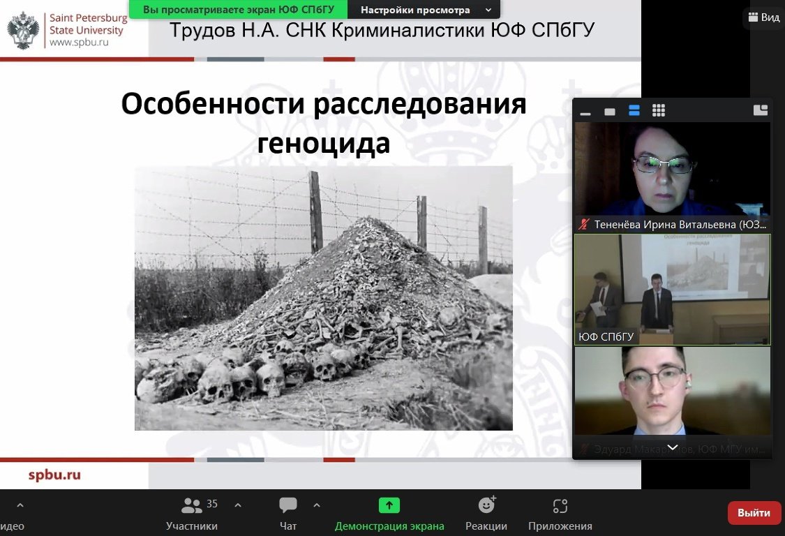В ходе работы круглого стола, приуроченного ко Дню Победы, участники узнали об уголовно-правовых аспектах геноцида как международного преступления; обсудили вопросы, связанные с особенностями расследования уголовных дел, возбужденных по фактам нацистского геноцида в отношении населения СССР; а также познакомились с современными технологиями, которые помогают в выявлении и раскрытии преступлений прошлых лет.