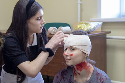 - Оказание первой помощи пострадавшим с использованием симуляционного оборудования не вызвало затруднений, а использование стандартизированных пациентов с загримированными ранениями, взывающими о помощи, вызвали эмоциональное потрясение- прокомментировала начальник Федерального аккредитационного центра КГМУ Долгина И.И. Школьникам пришлось вначале справиться с эмоциями, осознать и принять симулированную среду максимально приближенную к реальности и затем оказывать помощь «пострадавшим». По отзывам участников конкурса, мероприятие было зрелищным, познавательным, актуальным и полезным.