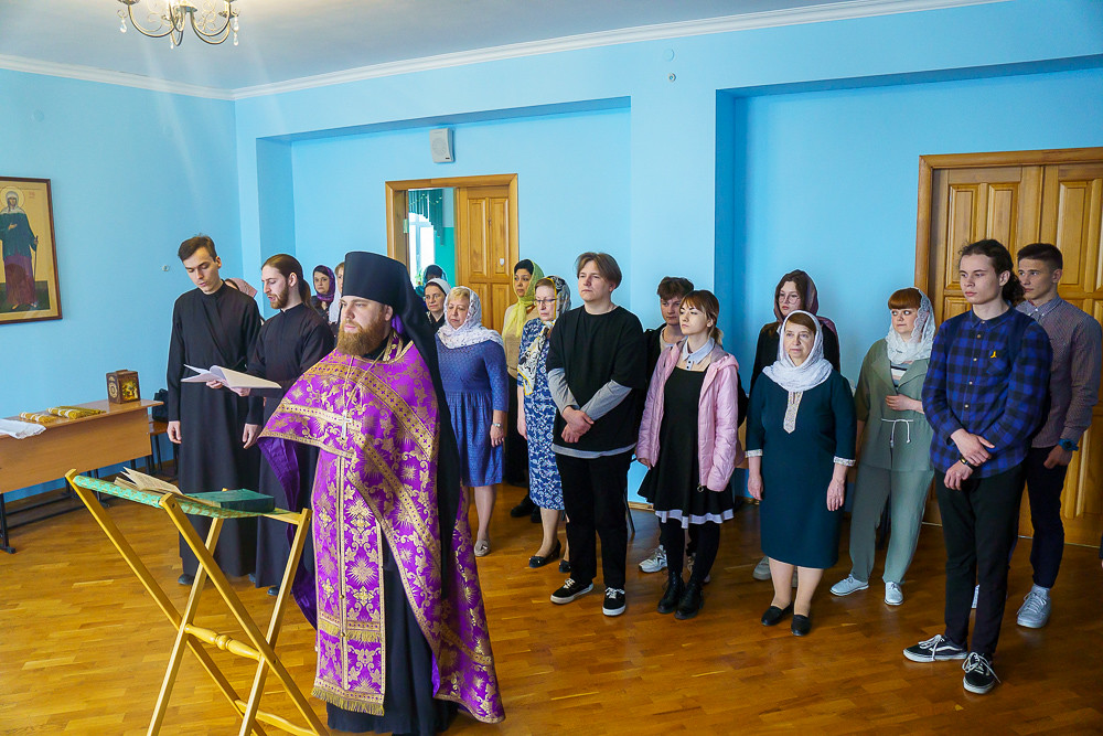 Перед пленарным заседанием в молитвенной комнате университета иеромонах Афанасий (Зимин), древлехранитель, заместитель председателя историко-архивного отдела Курской епархии, совершил молебен священномученику Дамиану. За богослужением молились сотрудники, студенты, участники конференции.