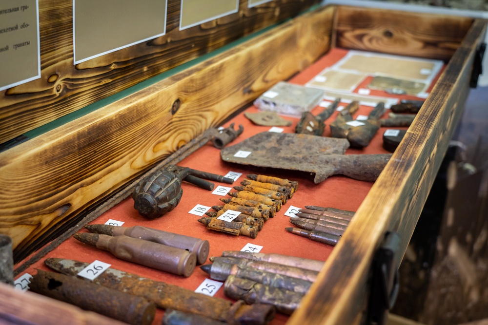 В школе-интернате учатся дети с нарушением слуха. Уже несколько лет ребята являются активными участниками поискового отряда «Курская земля». Выставочные предметы в экспозиции «Страницы Великой Отечественной войны и Специальной военной операции» собраны и переданы поисковым отрядом – здесь личные вещи бойцов, медальоны, частей боевого орудия.