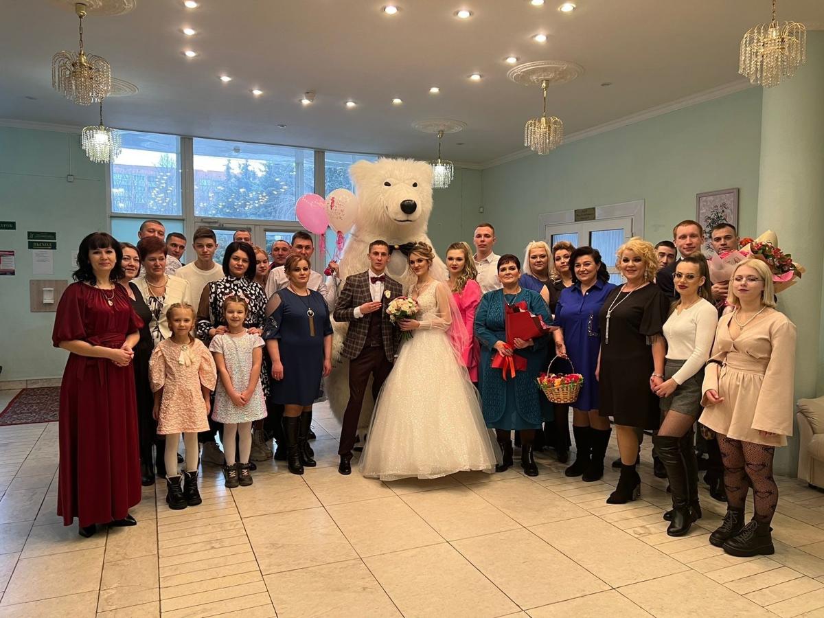 В Курске молодожёнов поздравил с днём свадьбы белый медведь