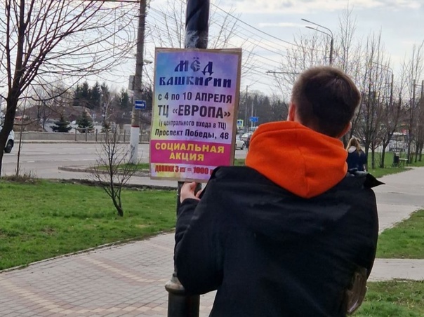 Расклейщики объявлений вешают рекламные брошюры на деревьях и столбах, загрязняя тем самым город