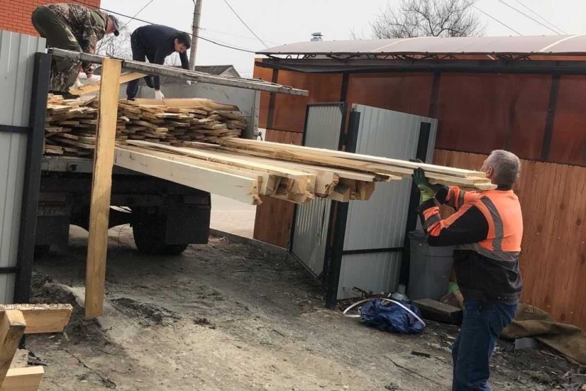 Сегодня на участке идут ремонтные работы. Единоросс отправил погорельцам доску для новой кровли крыши.