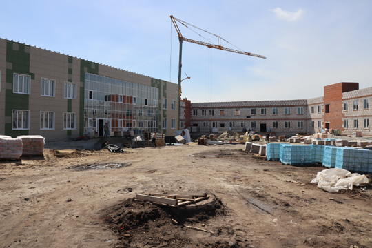 В некоторых помещениях уже ведется облицовка стен керамической плиткой. Завершены работы по прокладке наружных коммуникаций. Также подрядная организация приступила к планировке территории и подготовке к благоустройству.
