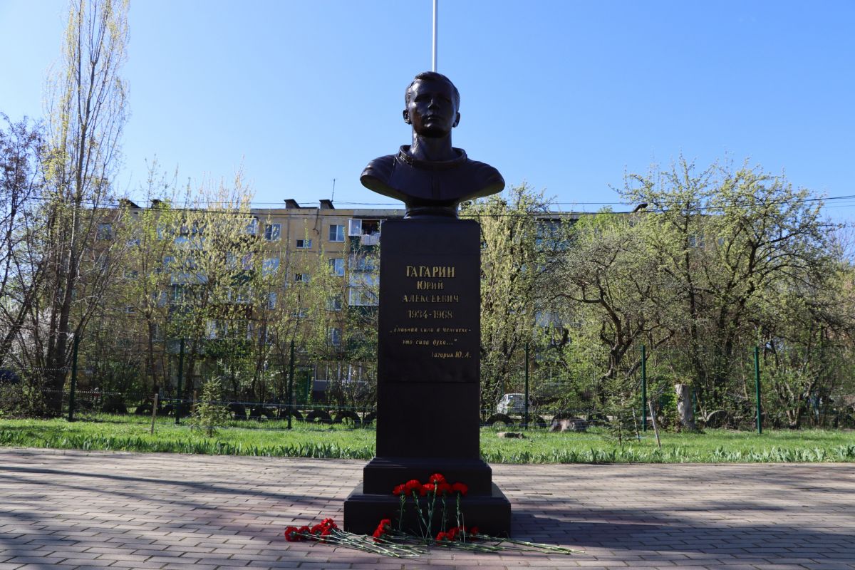 Единоросс Владимир Токарев совместно с молодогвардейцами возложил цветы к бюсту Юрия Гагарина, расположенному во дворе средней школы №50.