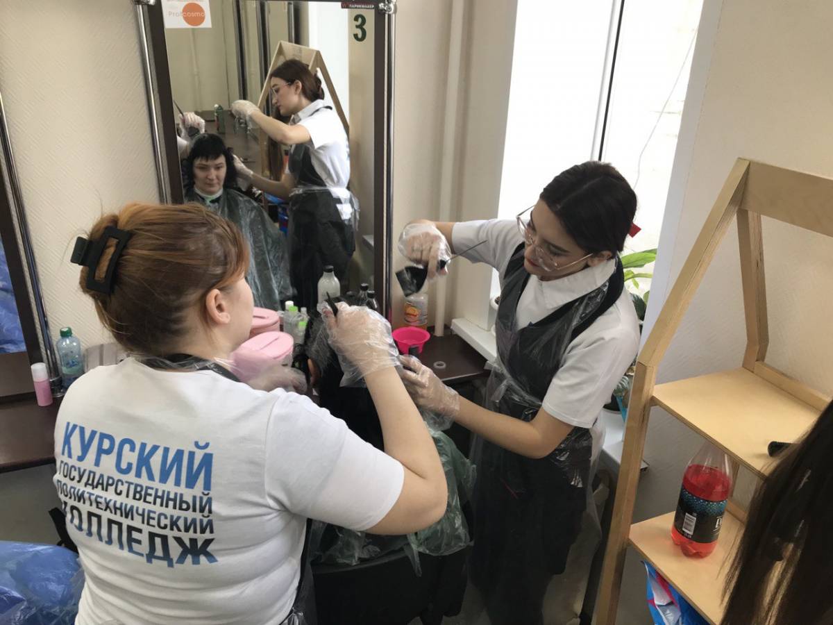 В стенах Курского государственного политехнического колледжа студенты 4 курса, обучающиеся по специальности «Технологии индустрии красоты» сделали гостьям стрижку, укладку и химическую завивку волос. Также для женщин оказали услуги по нанесению макияжа.