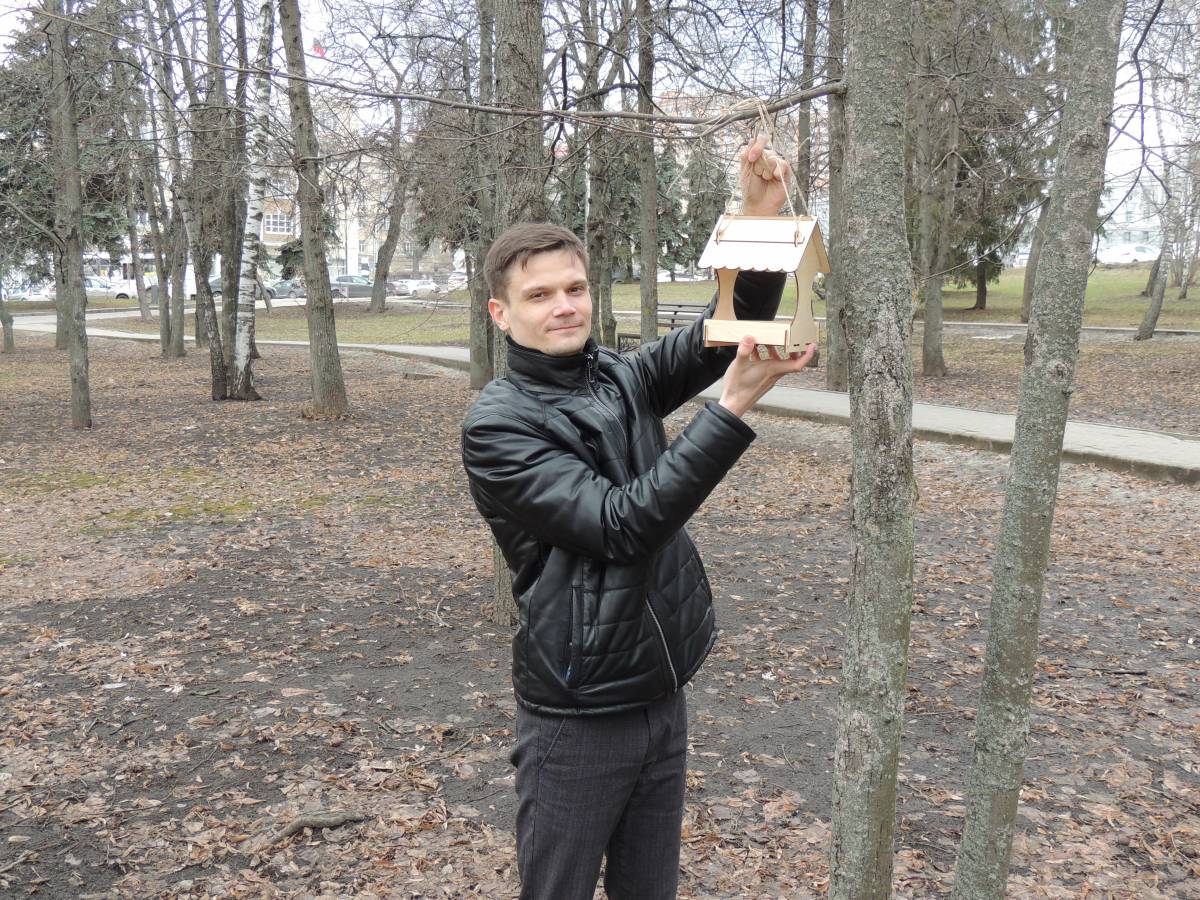 В Первомайском парке города они установили кормушки для птиц и наполнили их зерном.