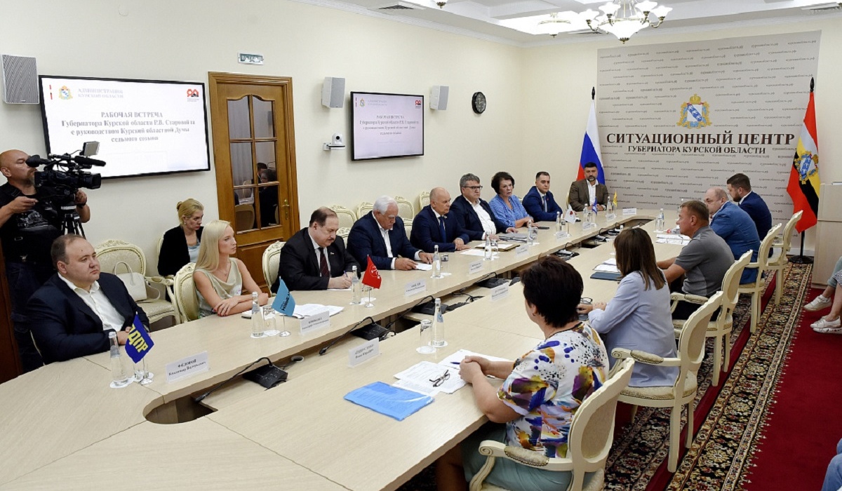 В Курске прошла рабочая встреча губернатора Романа Старовойта и руководителей фракций политических партий, представленных в Курской областной Думе.