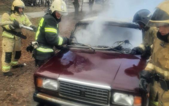 Сегодня в Курске около двух часов дня загорелся легковой автомобиль на улице 50 лет Октября.