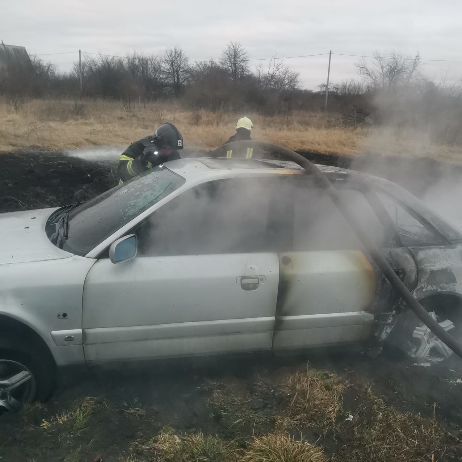 Под Курском 11 человек тушили горящий автомобиль «Ауди»