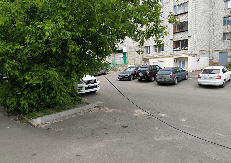 В Курске вдоль улицы Гоголя около недели болтается провод