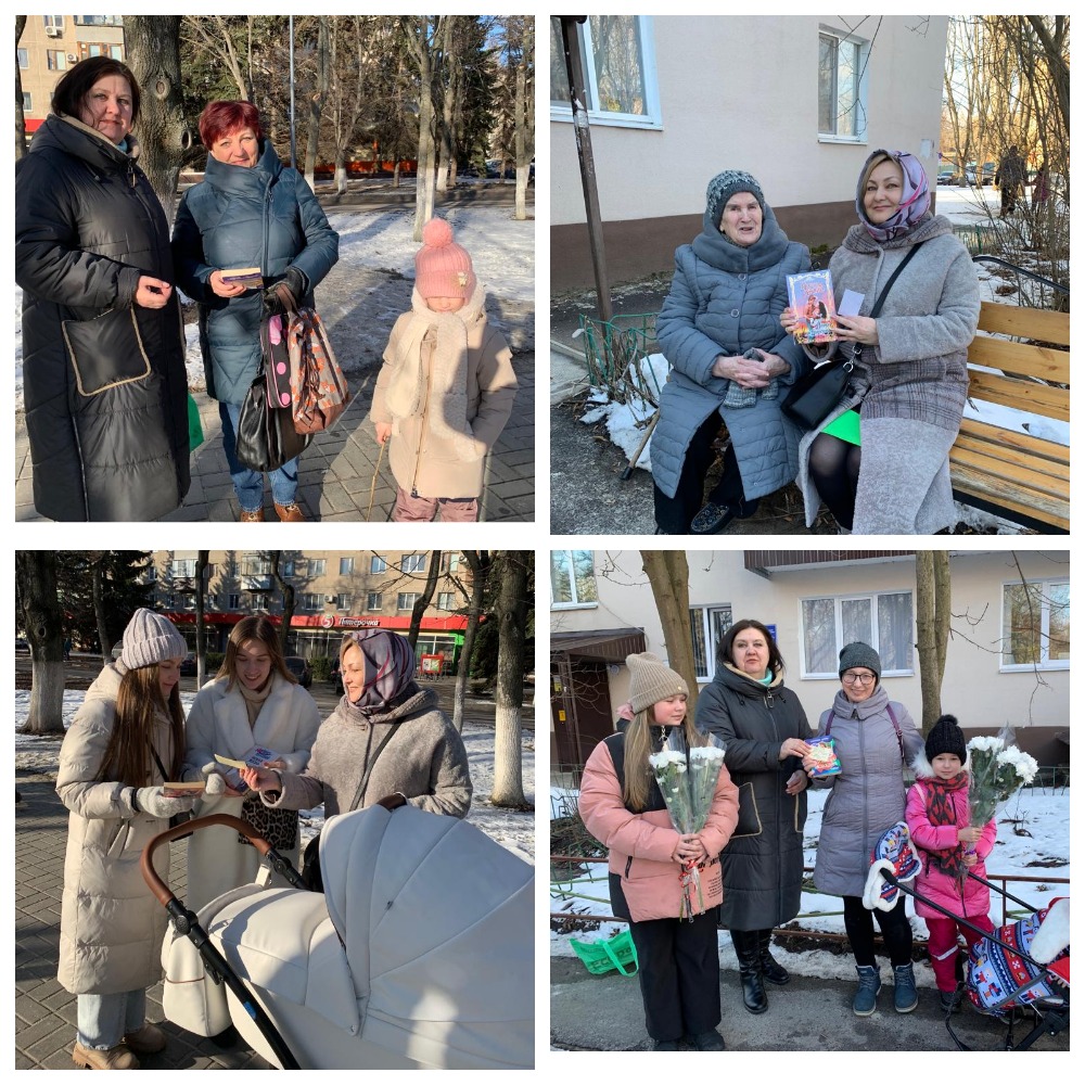 Акция проходила на улицах нашего города. В эти предпраздничные дни прекрасная половина человечества получает поздравления и подарки, которых много не бывает. Надеемся, что встреча с нами подняла настроение милым дамам, а подаренные книги скрасят досуг. Ведь чтение – приятный отдых, а книга – лучший друг! Будьте здоровы и счастливы!