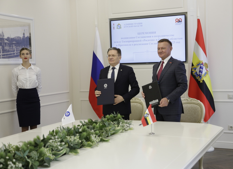 6 апреля Генеральный директор ГК «Росатом» Алексей Лихачёв и губернатор Курской области Роман Старовойт подписали новое соглашение о сотрудничестве между ГК «Росатом» и Правительством Курской области. В рамках соглашения в текущем году на социально-экономическое и инфраструктурное развитие Курчатовского района и города-спутника Курской АЭС будет направлено свыше 800 миллионов рублей «Подписанное сегодня соглашение является доказательством того, что Росатом – это не только технологический лидер, но и социально ответственная компания, заинтересованная в развитии территорий своего присутствия. Соглашение открывает широкий спектр возможностей для улучшения комфорта городского пространства, внедрения цифровых технологий в социальную сферу Курского региона, а также для модернизации школьных систем образования», – подчеркнул Алексей Лихачёв. В рамках соглашения предусматривается реализация проектов в сферах научно-технического, инновационного и инфраструктурного развития, а также производственного комплекса. «Для Курской области подписание соглашения, безусловно, является серьезной перспективой развития региона. Дополнительное финансирование способствует повышению социально-экономического благополучия и инновационному развитию города Курчатова и Курчатовского района. В 2023 году запланированные средства будут направлены на улучшение транспортной доступности в южных микрорайонах города, строительство в Курчатове детского технопарка и физкультурно-оздоровительного комплекса с ледовой ареной, развитие программного комплекса «Умный Курчатов», реализацию экологических инициатив и мероприятий по модернизации коммунальной инфраструктуры», – отметил Роман Старовойт.