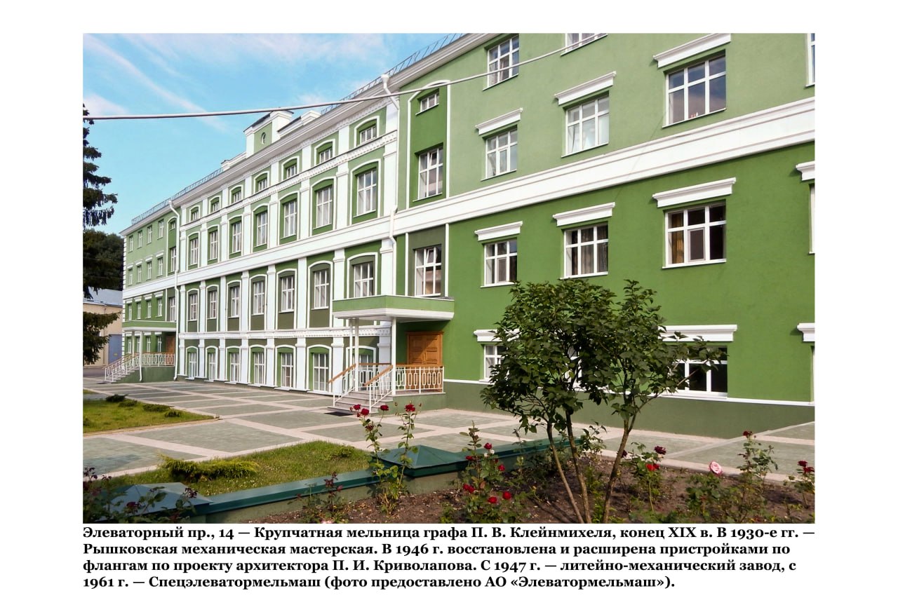 На рубеже XIX–XX веков по улице Черняховского располагалась усадьба графа Петра Клейнмихеля. На месте современного дома 52А находились графские мельницы, ферма, конский завод и даже пожарный отряд, а также пахотные земли и целый сад. В XX веке имение перешло совхозу «Красная поляна», управление которого развернуло мастерскую. Позже она была переделана под нужды элеваторного завода во второй половине века.