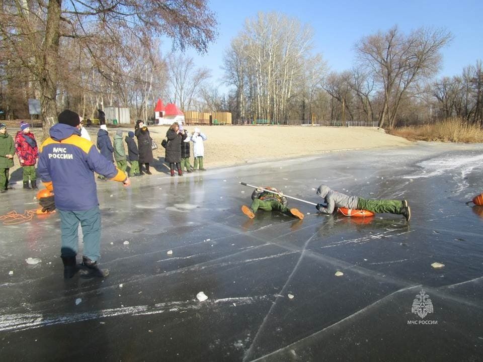 Школьники попробовали самостоятельно оказать помощь утопающему: бросили спасательный круг и попытались вытащить условно пострадавшего на безопасное место.