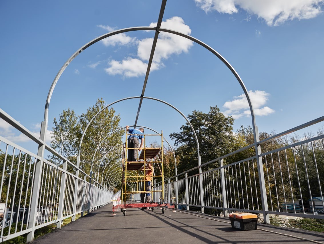 К сегодняшнему дню специалисты уже закончили менять опорные части пролётного строения моста и ремонтировать балки среднего пролета. Кроме того, были обновлены перильное ограждение, асфальтобетонное покрытие, три лестничных схода.