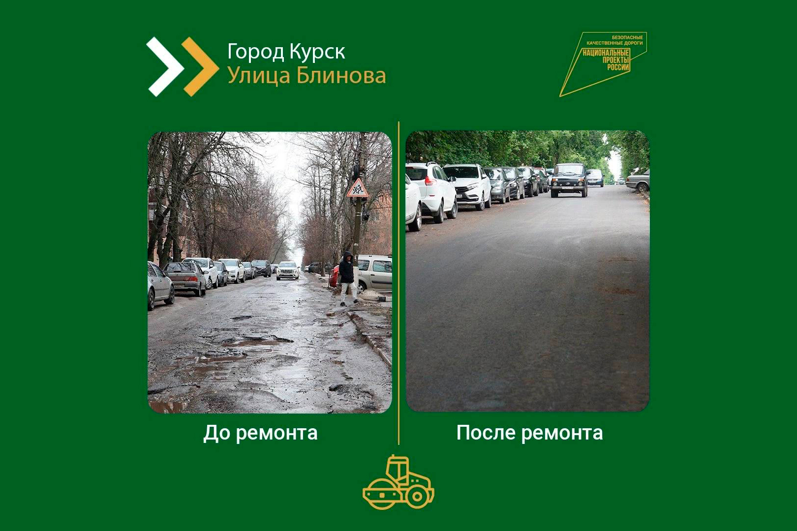 На финальных этапах дорогу приводят в порядок установкой новых люков, бордюров и дорожных знаков.
