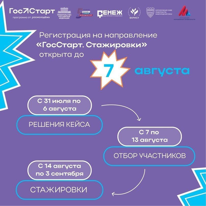 Регистрация для участия в программе «ГосСтарт» по направлению «ГосСтарт.Стажировки» открыта до 7 августа