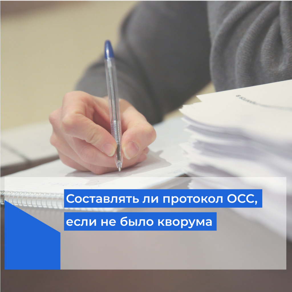 При отсутствии нужного количества собственников на очном ОСС можно провести заочное голосование с той же повесткой дня. В этом случае инициаторы составляют акт об отсутствии кворума, подтверждённый листами регистрации. Гораздо проще и быстрее проводить собрание сразу в очно-заочной форме.