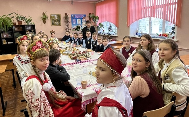 Выучейская Диана подготовила художественный пересказ отрывка из повести Н.В.Гоголя “Ночь перед Рождеством”, Наумова София исполнила поздравительную колядку и рассказала о трех типах святочных гаданий: об урожае, о судьбе членов семьи, о замужестве или женитьбе. Безмельцева Анастасия, Самсонова Екатерина, Глазунова Кира, Грибова Елизавета, Мосолов Павел, Кононов Валерий, Ванин Иван были самыми активными участниками праздника.