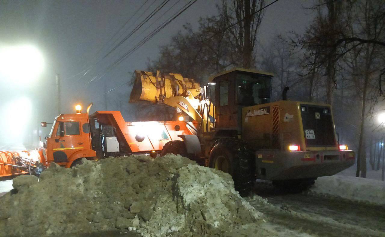 Ночью дорожники чистили тротуары, остановки и пешеходные переходы, а также вывозили снег с улиц.