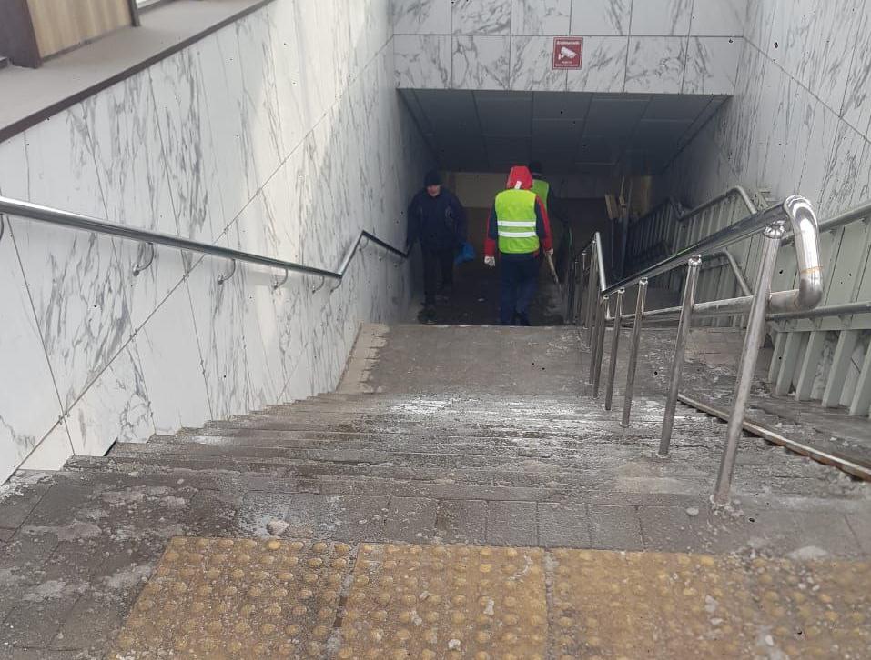 В комитете дорожного хозяйства пояснили, что рабочие привели в порядок порожки и площадку перед входом, обработали их, а также сам переход противогололедными реагентами.