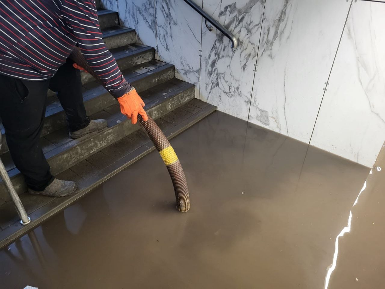 В Курске подземном переходе на улице Пионеров идет откачка воды