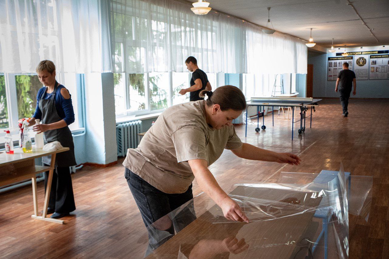 В общеобразовательных и дошкольных учреждениях города продолжаются работы по обеспечению мер безопасности: сотрудники школ, садов, родители оклеивают окна защитной пленкой, укрепляют проемы мешками с песком.