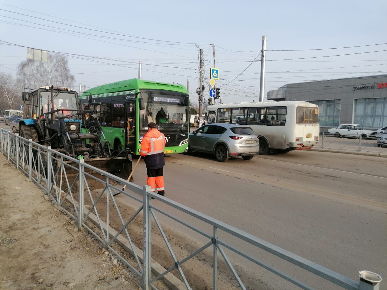 В комитете дорожного хозяйства рассказали, что специалисты на автомобильных и пешеходных зонах ликвидируют смет, мусор, пыль и песок.