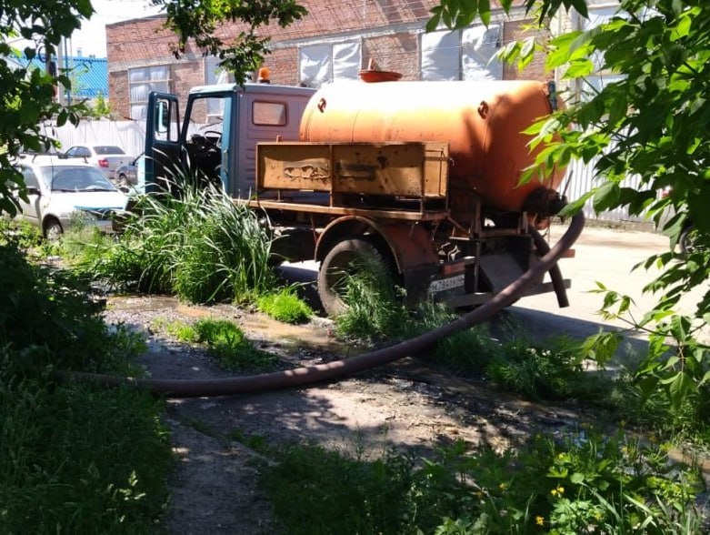 Специалисты «Курскводоканала» периодически откачивают канализационную воду из самотечного коллектора бывшего завода.