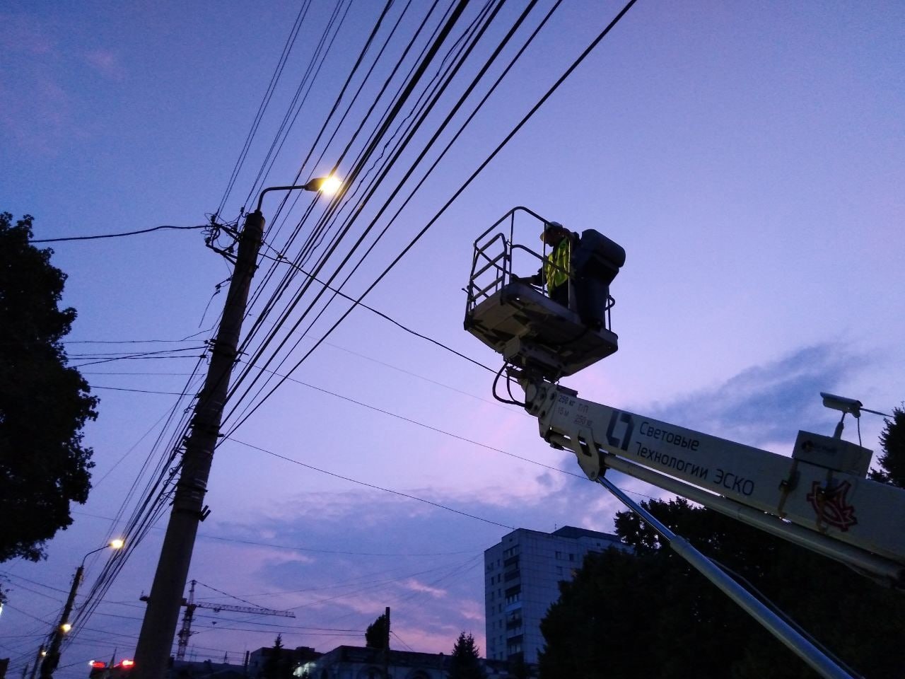Кроме ремонта светильников, подрядная организация демонтировала лишние кабельные линии, обрезала деревья и подвесила изолированные провода.