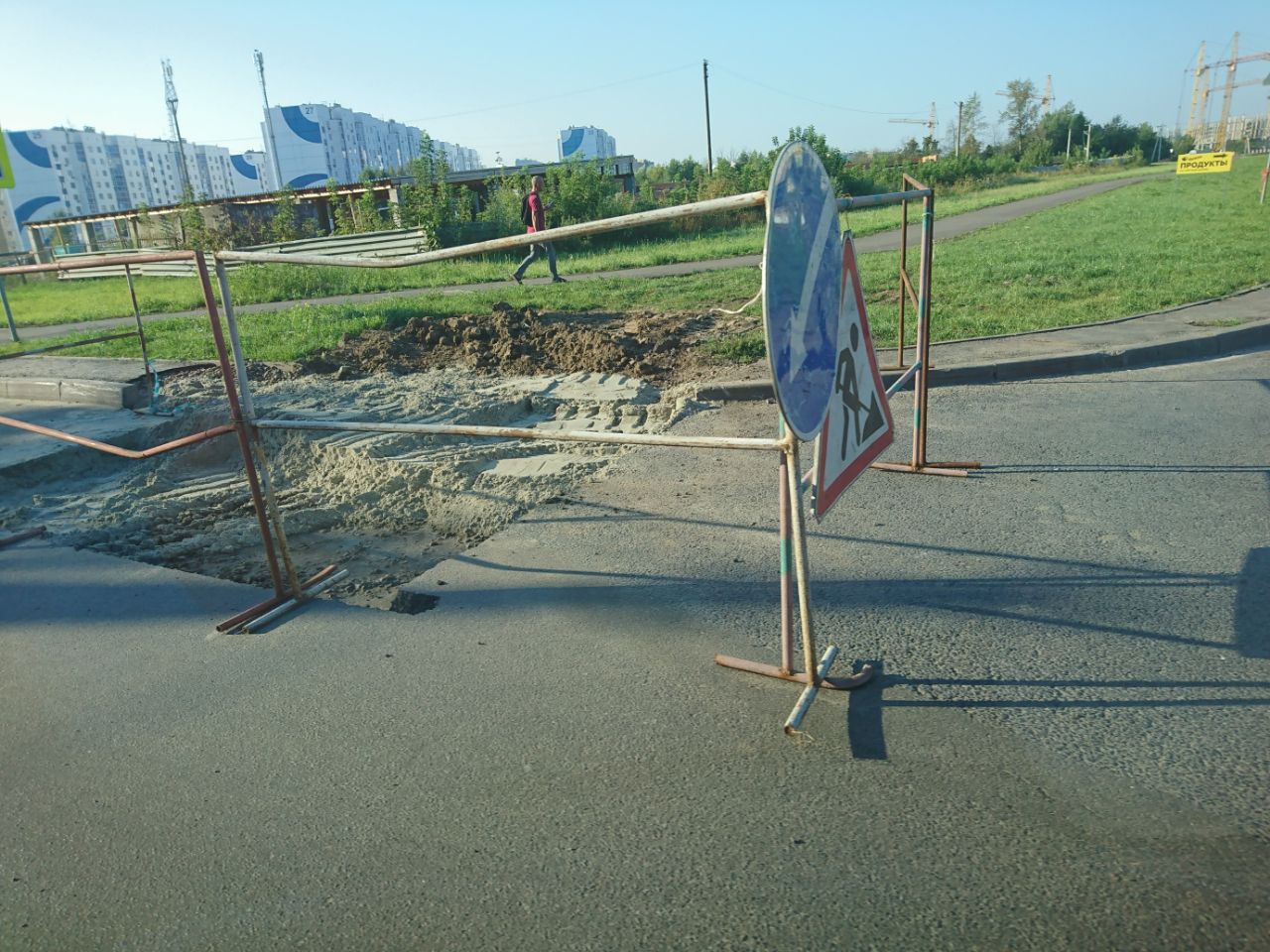 Ночью рабочие уберут ограждение и приведут в порядок проезжую часть.