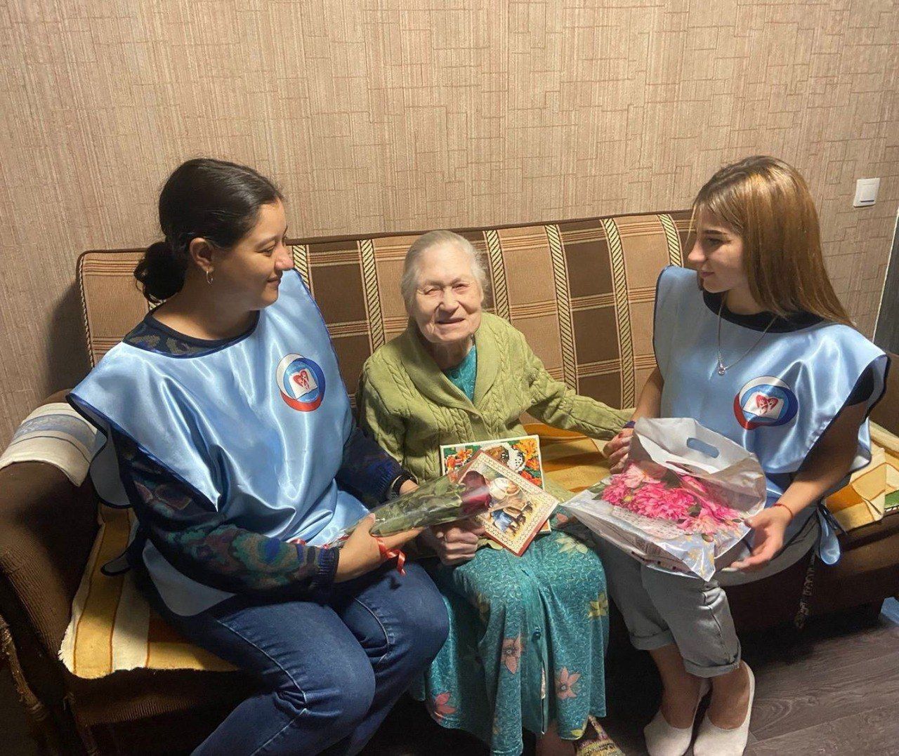 Также активисты навестили и поздравили с праздником ветерана, труженика тыла Анну Кузьминичну Веретенникову. Ей исполнилось 92 года.Фотогалерея 3 — 1/3 —