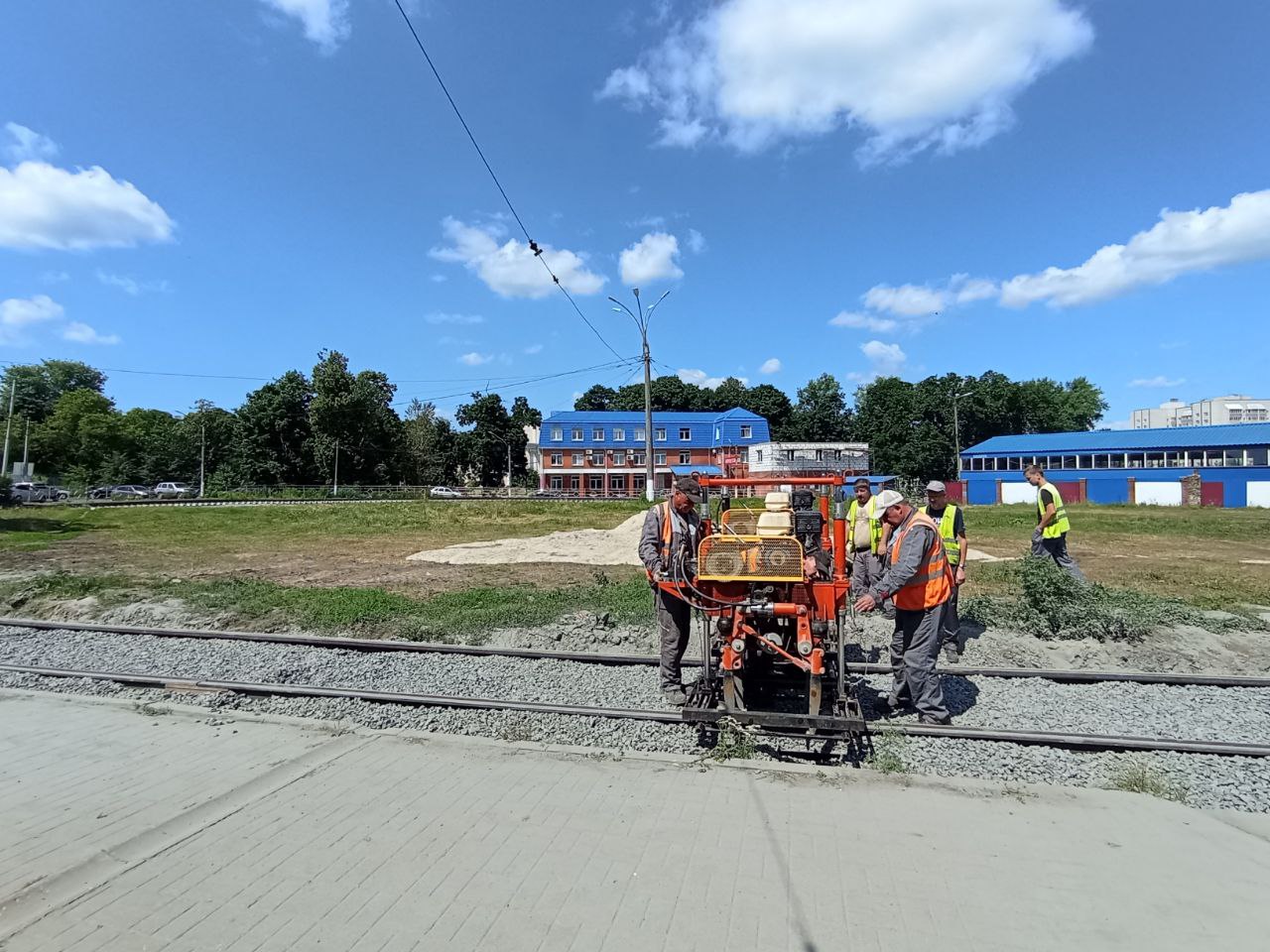На участке в районе разворотной петли на железнодорожном вокзале работниками произведен монтаж рельсошпальной решетки, идет работа по подсыпке щебня и выправке трамвайного пути. Протяжённость – 384 метра.