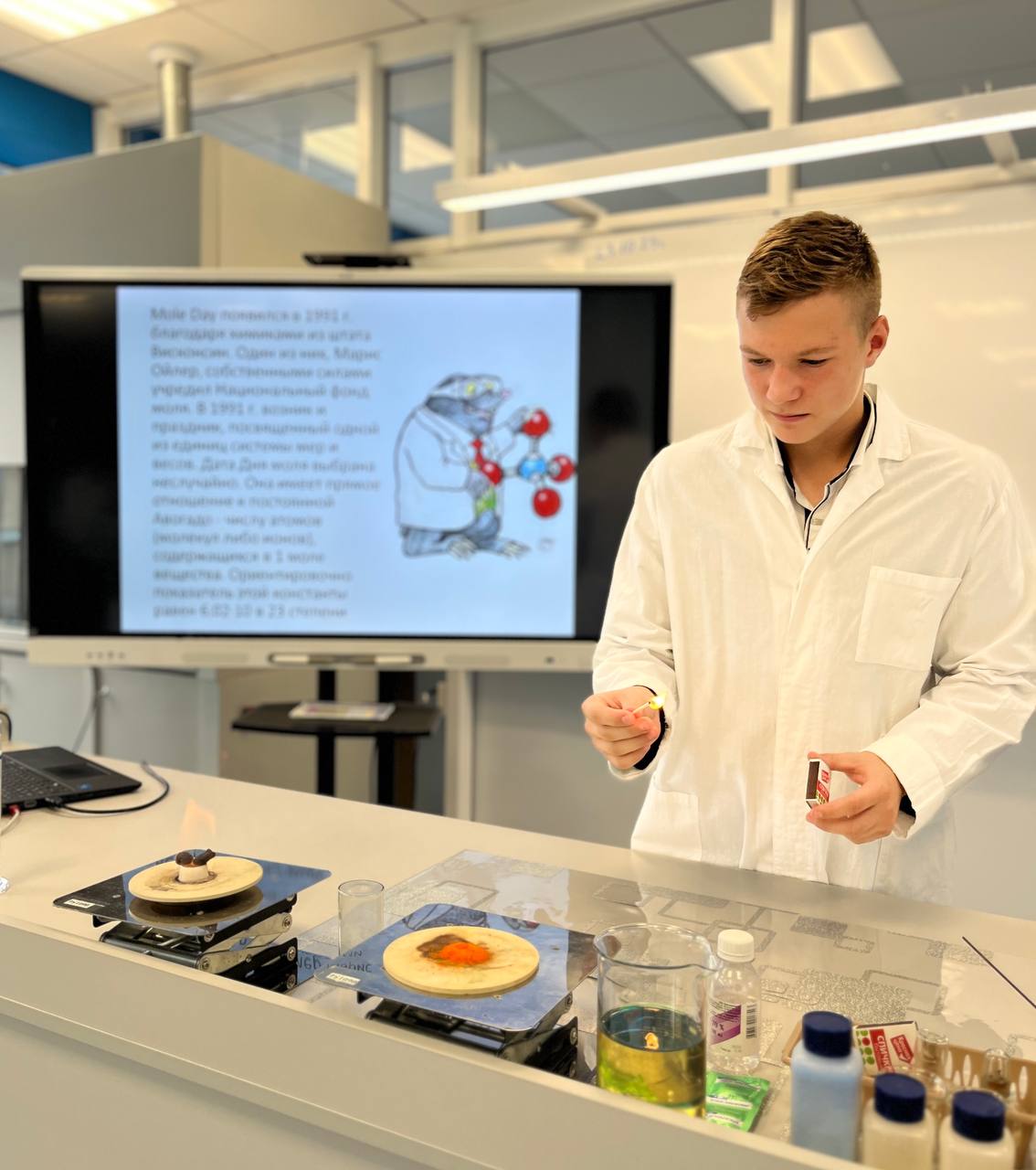 В День моля ученики школы № 35 им. К. Д. Воробьева узнали много нового и интересного о таком важном понятии в химии, как моль.