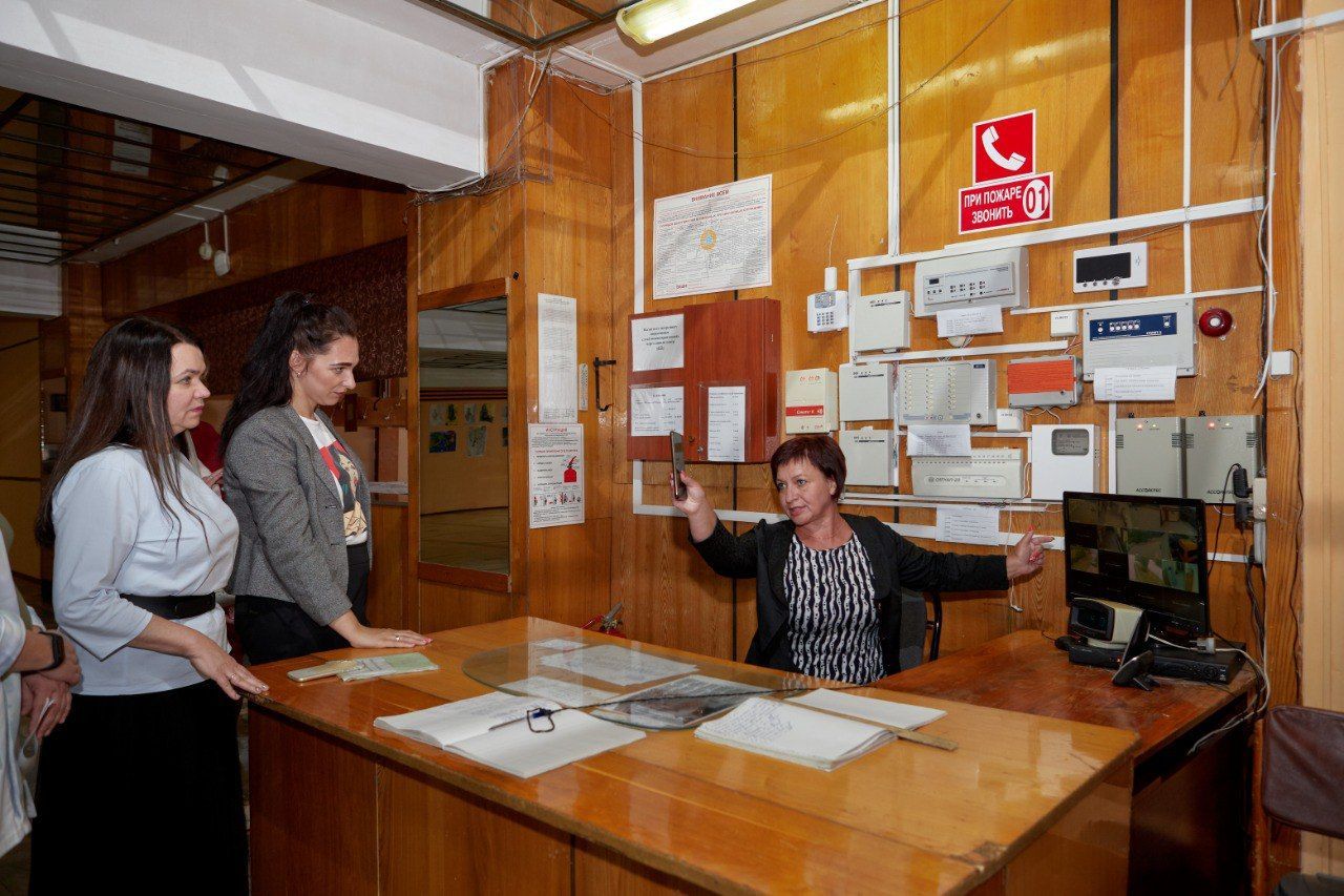 Как отметила Наталья Александровна, подобные выезды в каждое учебное учреждение проводятся на регулярной основе.Директор школы Ольга Рубанова рассказала о том, какая проводится работа по обеспечению безопасности воспитанников. Все требования безопасности соблюдаются. По периметру здания установлены камеры. Картинка выводится на экран охраны.