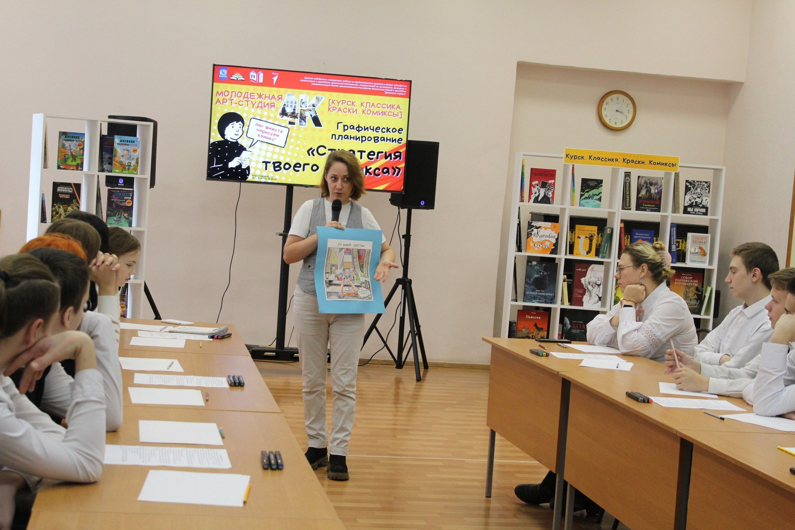 Юные куряне приняли участие в графическом планировании «Стратегия твоего комикса» в рамках работы молодёжной арт-студии 4К в Центральной городской библиотеке им. Ф. А. Семенова