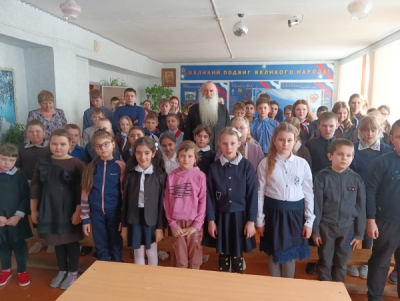 Отец Василий стал гостем урока «Разговоры о важном». Урок проводился в форме беседы на тему «Служение Отечеству». Батюшка поведал школьникам о том, что такое патриотизм и в чем он проявляется, что это очень высокое качество, которое в христианском мировоззрении необходимо каждому в себе развивать. Говорил о духовном, внутреннем мире человека, его душе и духовных качествах: любви, вере, свободе выбора, милосердии, уважении, доброте и совести. Также школьники узнали о смысле Великого поста, о его особых днях и необходимости добрых отношений к ближним.