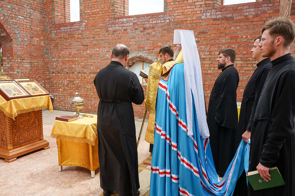 Митрополит Герман совершил молебен в строящемся храме в честь Архистратига Божия Михаила в пос. Камыши